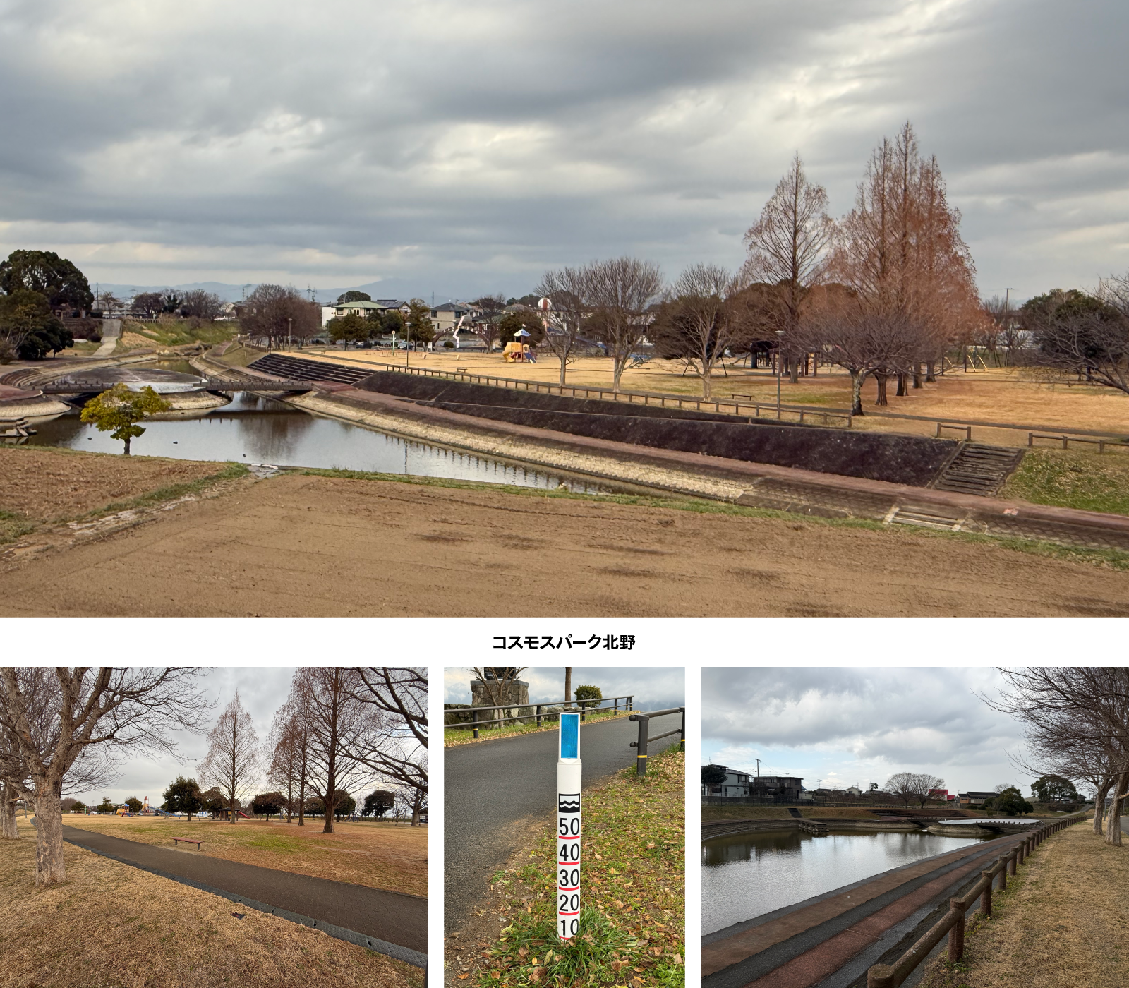 福岡県久留米市北野町にある「コスモスパーク北野」は、陣屋川沿いに整備された市民の憩いの場である一方、河川に近接しているため、大雨の際には冠水や越水への迅速な対応が求められる場所です。