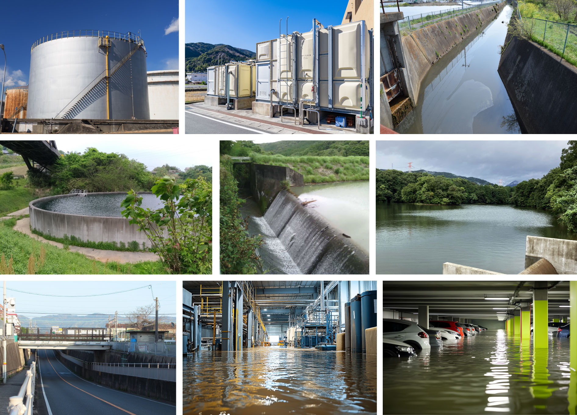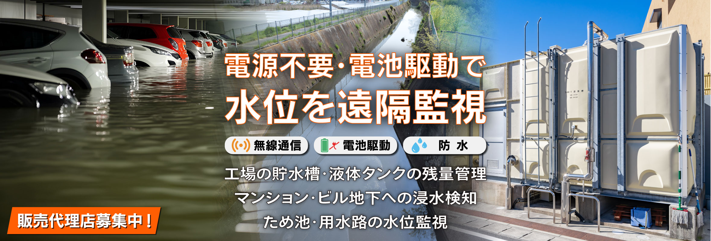 小河川・用水路の冠水検知から、工場やマンション敷地内の浸水監視、貯水槽の水位管理まで、小規模から大規模まで幅広いシーンに対応。危機管理型水位計にも準拠しています。